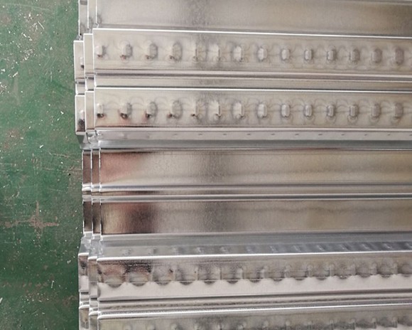 3:压型板表面压纹使楼承板与混凝土之间产生的结合力,使二者形成整体,配以加劲肋,使楼承板系统具有高强承载力。